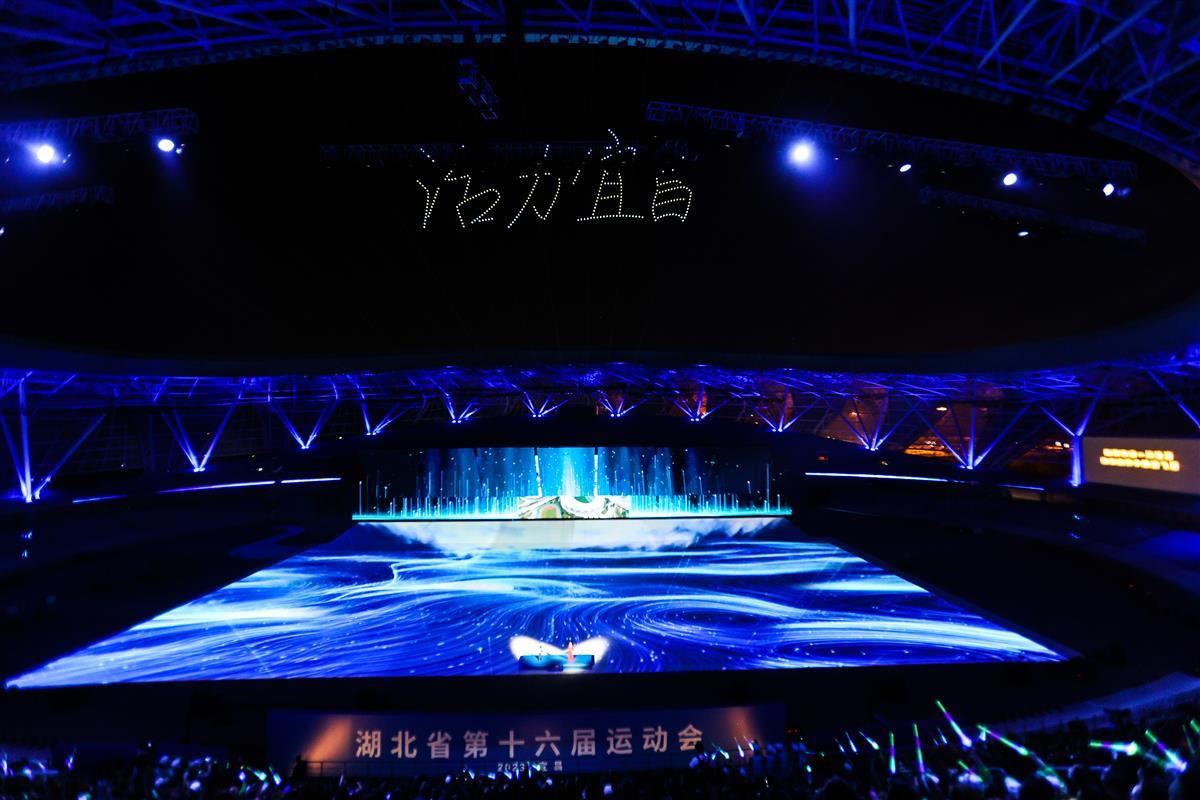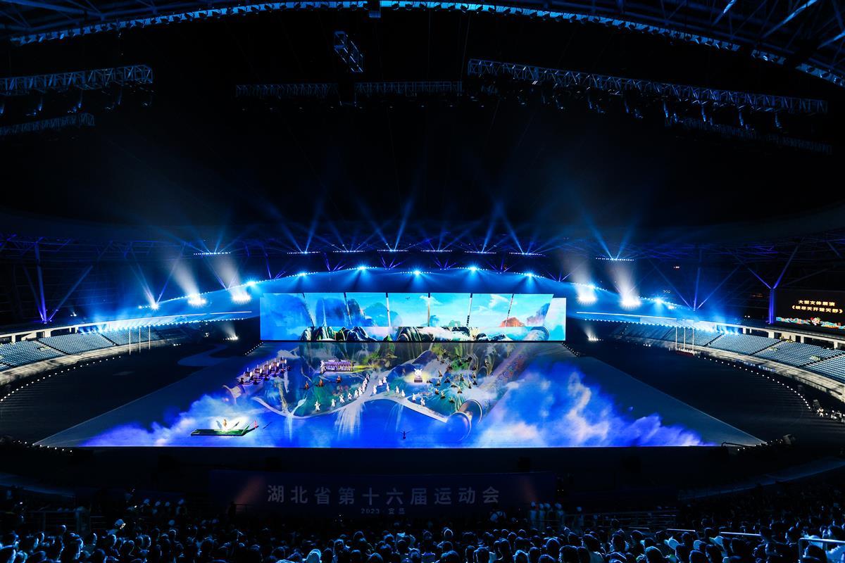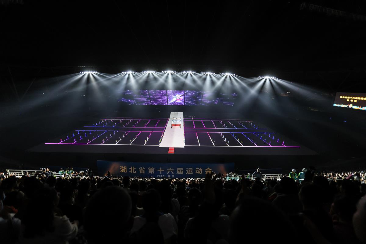 4月10日晚,湖北省第十六届运动会组委会在宜昌奥体中心体育场进行了带妆、有观众的开幕式彩排。