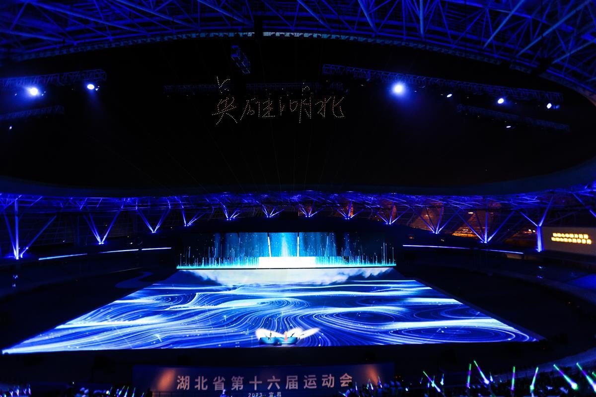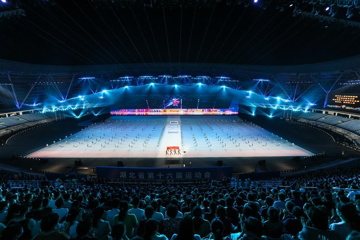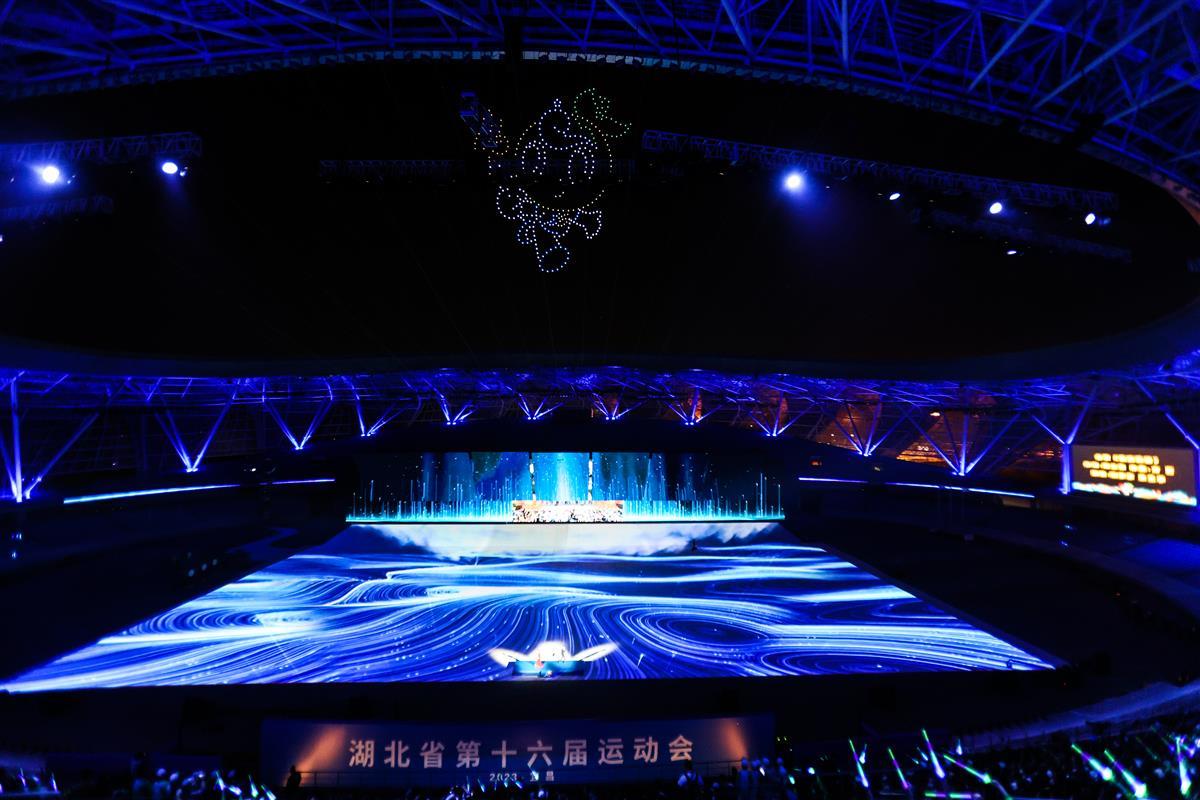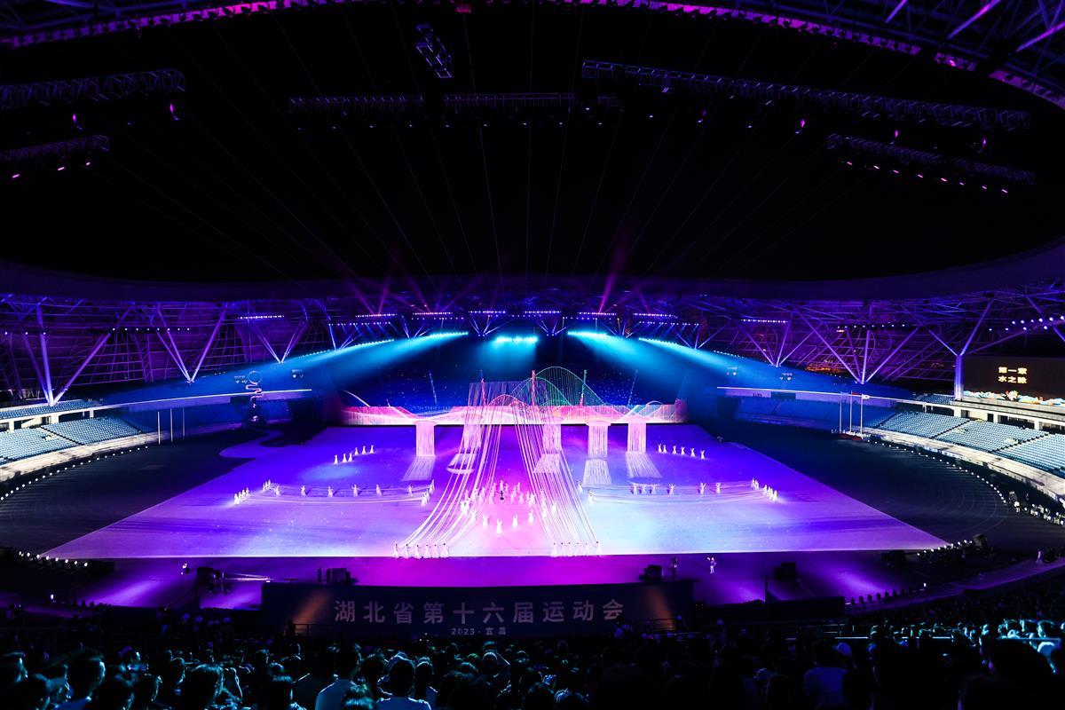 4月10日晚,湖北省第十六届运动会组委会在宜昌奥体中心体育场进行了带妆、有观众的开幕式彩排。