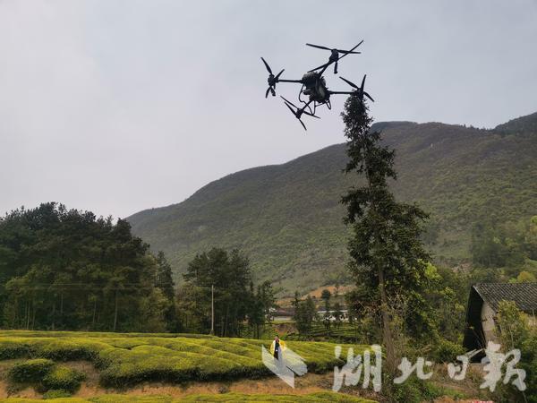 湖北日报客户端(通讯员向左斌 周琦)由于劳动力短缺,手工叶面施肥效率低,村民经常错过茶叶叶面肥喷施的最佳时机,不利于增产增收。4月10号,铁炉白族乡三农公司采用新技术,利用无人机开展茶叶叶面肥喷施。