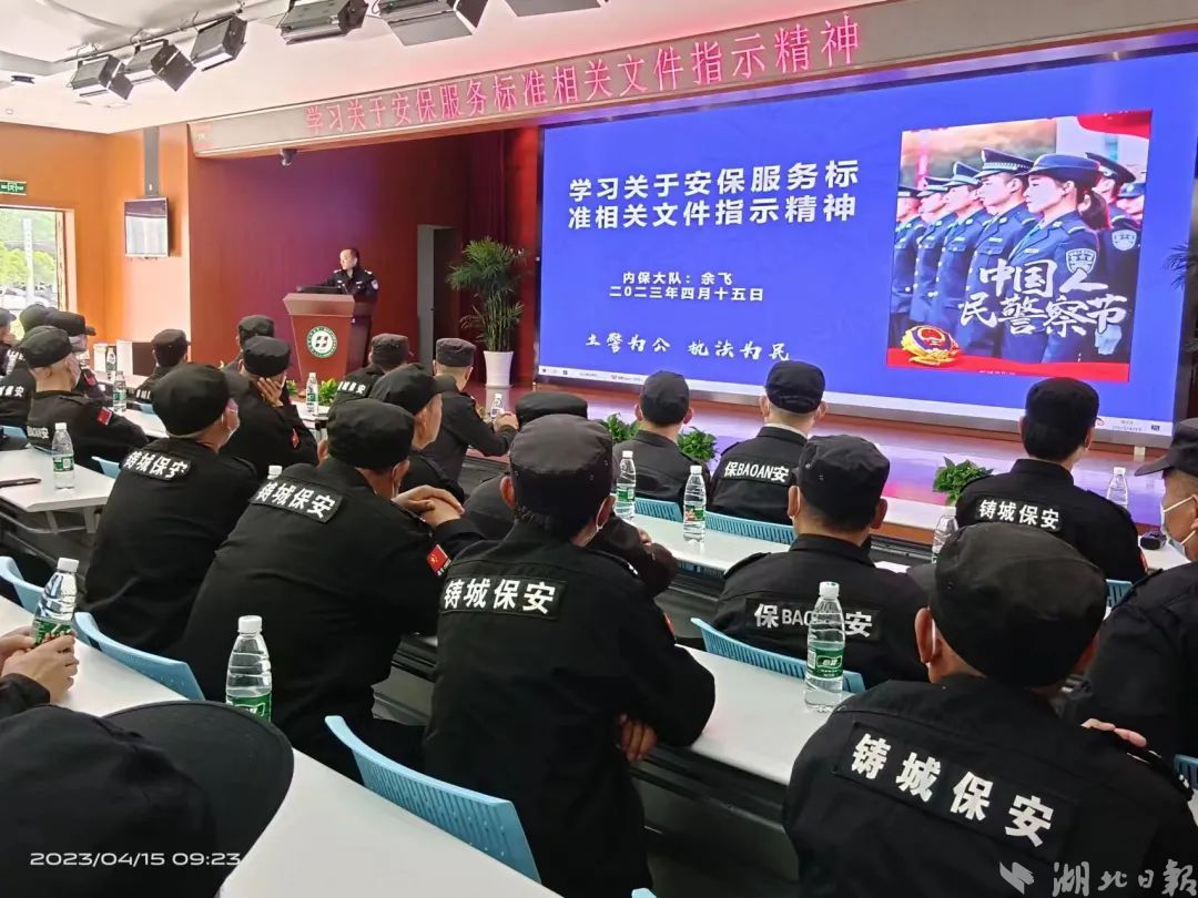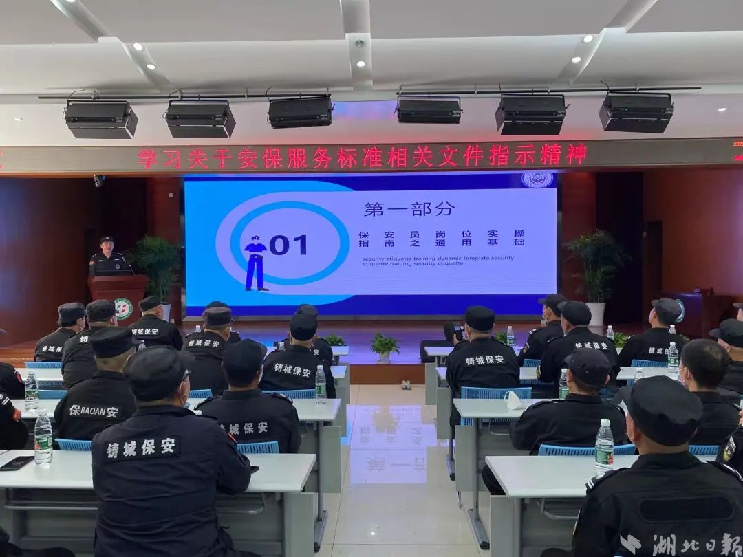 培训会上,内保大队领学了《保安服务管理条例》及《湖北省中小学幼儿园保安服务管理规定》,重点讲解了保安员的着装要求和标志标识、校园保安员的岗位职责、勤务工作、安全防范、文明用语等。对保安员培训考试要求做了详细讲解,要求保安公司对无证上岗的保安员进行培训、考试,做到人人持证上岗,切实抓好保安队伍管理,进一步加强内部安全保卫工作,落实人防、物防、技防等防范措施。