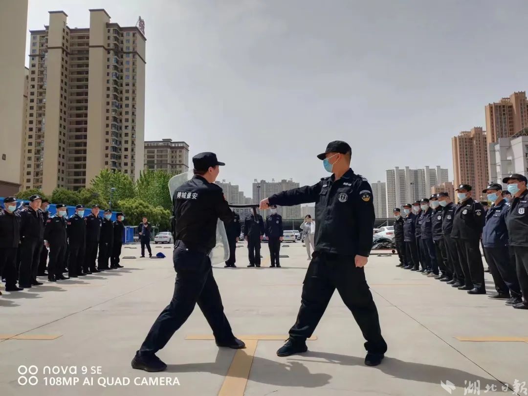 民警同时就保安人员如何提高专业技能及队列训练做了详细的讲解和辅导,对保卫器械使用、突发情况处置等进行了反恐实操演练。