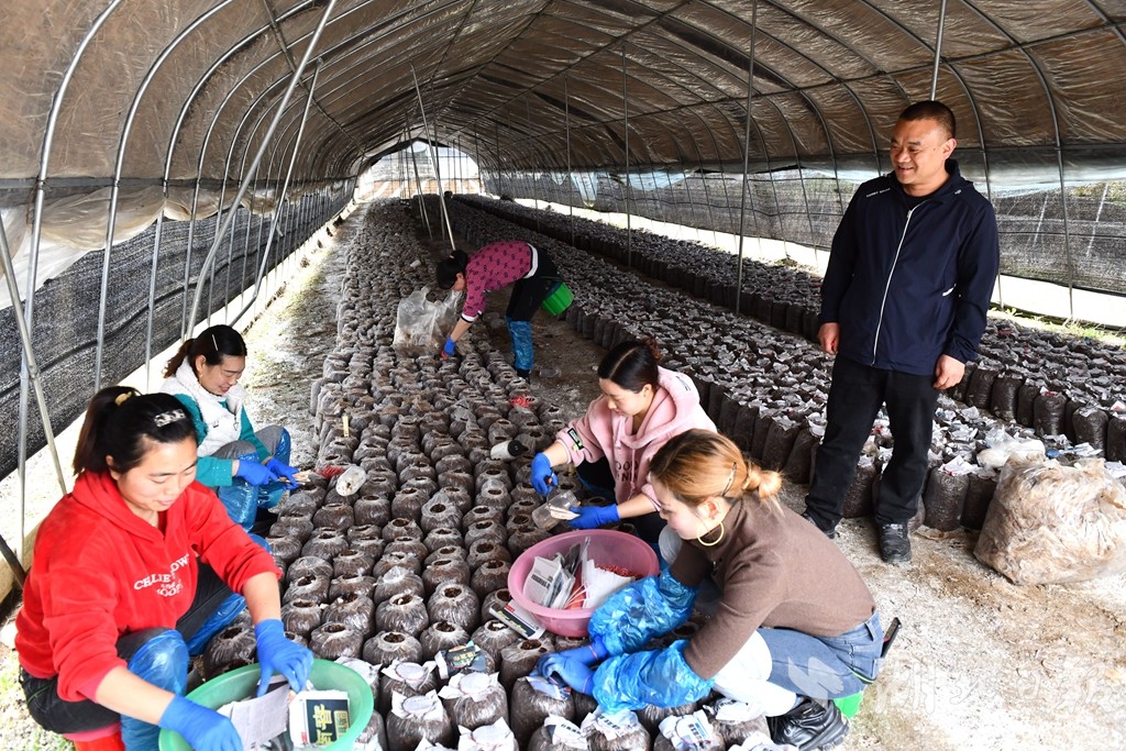 当日,在平菇种植大棚,见着来自乡集镇龙潭坪社区集中安置小区,有着时尚女郎之称的颜奉敬,正忙着和一道姐妹们接种,动作熟练麻利。