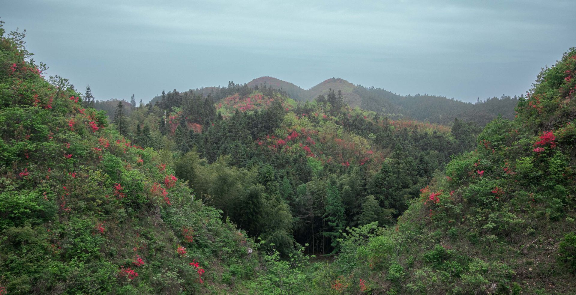 映山红贴着大湖山结实的胸膛,感受心底温暖和爱意,与山同脉动,共绵长,相知相守,连心共融,盛放属于自己的惊艳爱情,才有了如今绵延万亩的恢宏模样。