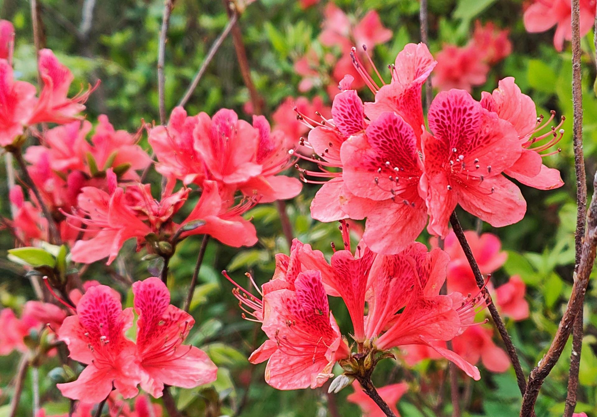 很喜欢,欣赏映山红别具一格的花事魅力。晴有晴的味道,雨有雨的风韵。晴朗之日,映山红在阳光下翩然起舞,灵动雀跃,艳丽明快,娇媚飘逸,使人流连忘返;于微雨中,拥风吻雨,泪眼涟涟,含春带露,我见犹怜,令人牵魂绕梦。