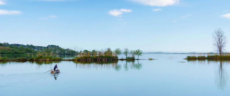 这里土地肥沃、水源充沛,村民以渔业、农业为主,平明闾巷扫花开,薄暮渔樵乘水入,撑船的渔翁隐入山水画中。