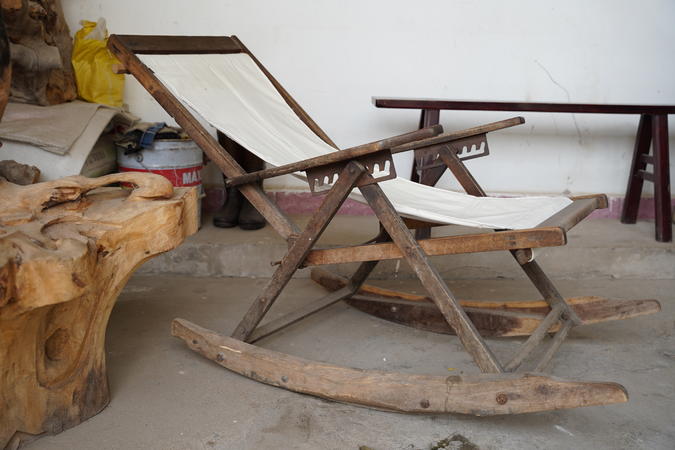 进入李老的家有如参观一场木雕展,家中后院的长桌上摆满了雕刻工具,一把看似简单的木摇椅用了50多年仍牢固扎实,木头被雕刻得如同腾空的神龙,又有如白鹤仙叟。六角圆桌刻着美丽的飞花,无处不是令人叹服的工艺,构思巧妙,呼之欲出。