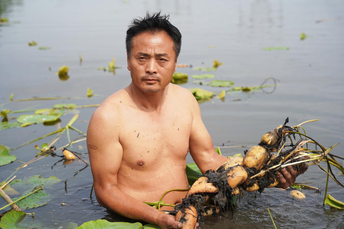 花湖莲藕是叫得响的农产品品牌。经营者万永池,人如其名,与荷池打了半辈子交道,种藕、挖藕、贩藕经验丰富。