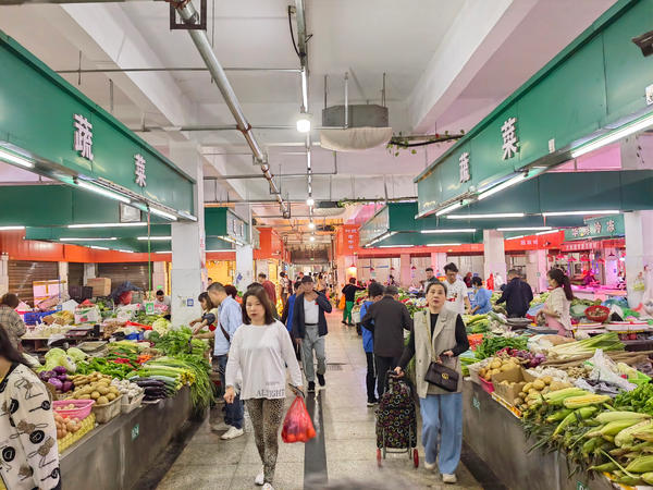 3700平方米的华山集贸市场,是花湖地区最大的集贸市场。每天迎接将近4万的居民,100多户商贩云集,供应鸡鸭鱼肉、瓜果蔬菜,各类生鲜熟食应有尽有。