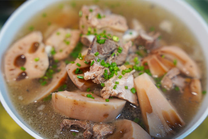 清炒藕带清甜可口,泡椒藕带酸脆爽口,炸得金黄酥脆的藕夹最受孩子们的欢迎。小火慢熬的排骨藕汤,汤汁浓郁香厚。