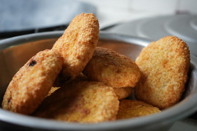 翻着葱花的花卷好吃又好看,刚刚出锅的红烧肉入口即化、肥而不腻,香气弥漫整个院子。油炸绿豆粑酥酥脆脆,健康美味。