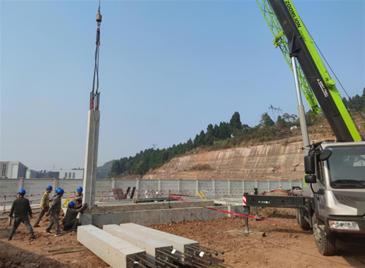 全站采用装配式预制混凝土建造,配电装置楼、辅助用房、GIS、电缆沟、围墙等建构筑的柱、墙、梁、屋面叠合板等均为预制件现场安装,柱板梁结合部采用套筒灌浆方式连接,其装配率达到72%,全站装配水平96%,创下宜昌变电站装配式建设又一新纪录。