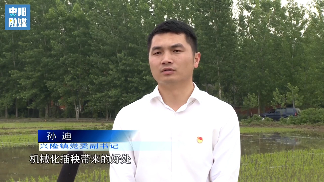 枣阳市兴隆镇党委副书记 孙迪:机械化插秧带来的好处,已经得到了广大农户的认可,不仅解决了传统插秧带来的劳动强度大、人工紧张的难题,而且通过新技术、新机具的应用,大大提高了水稻栽插的效率,使水稻生产朝着更加绿色、增效的方向发展,从而带动了农业增效、农民增收。