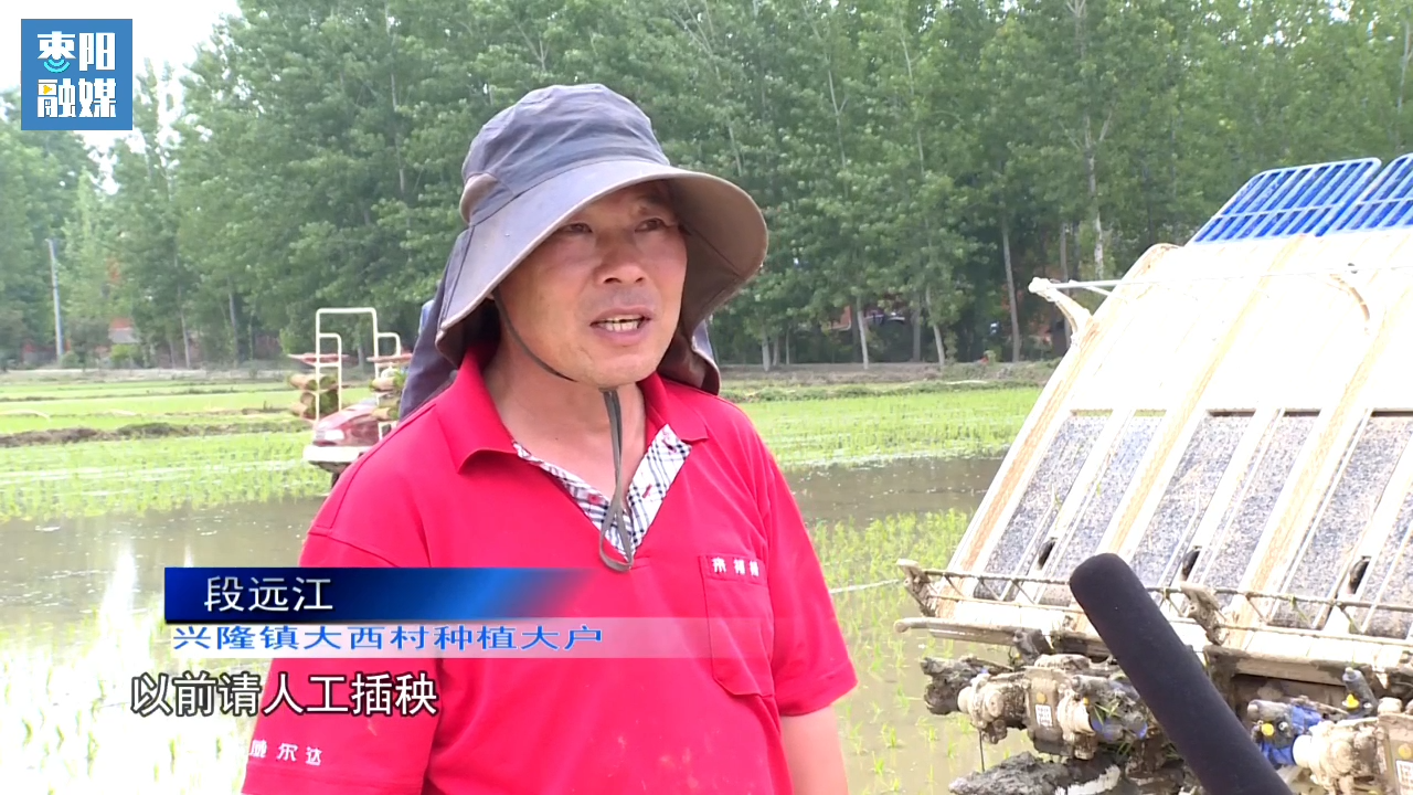 枣阳市兴隆镇大西村种植大户 段远江:之前请人工插秧,每天请十五六个人,快的情况下,(一天)可以插到20亩左右,现在机器化插秧,每天可以插到40亩以上,我今年种了300多亩水稻,计划一个星期就可以插完,这样既省时又省力。
