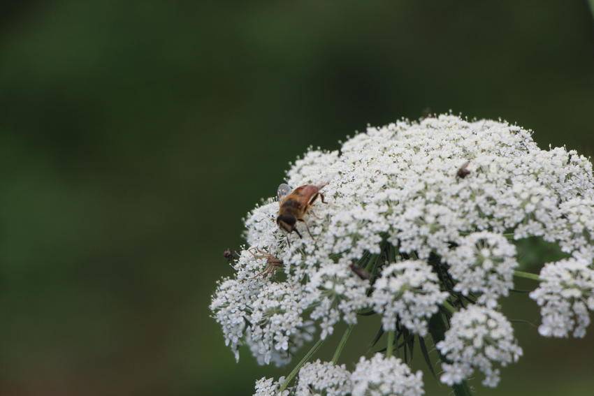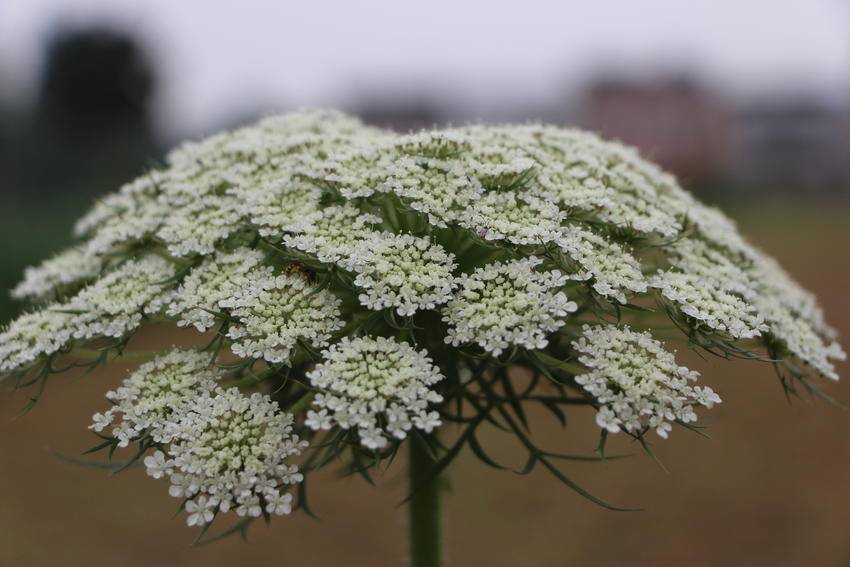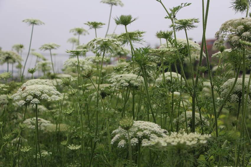 路边一处野生胡萝卜花地吸引在此散步的人们。