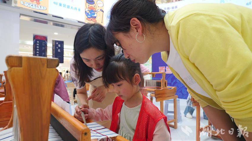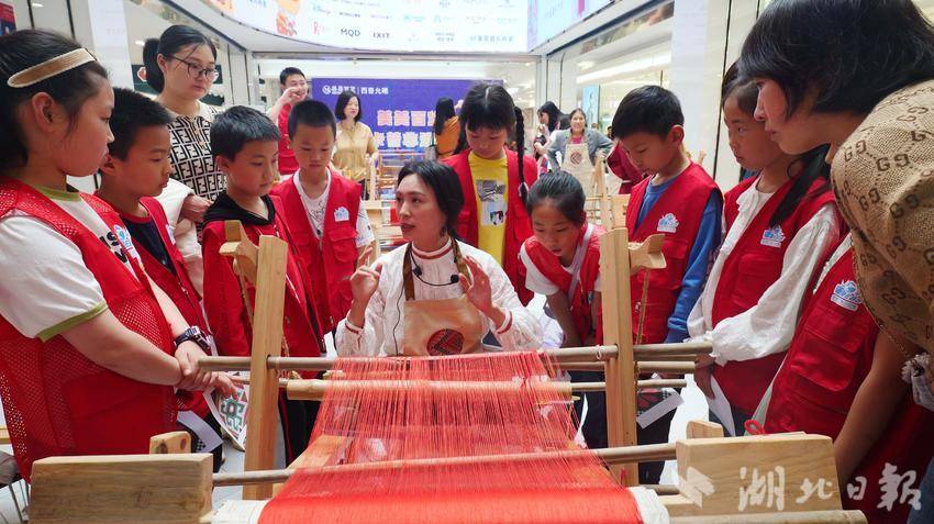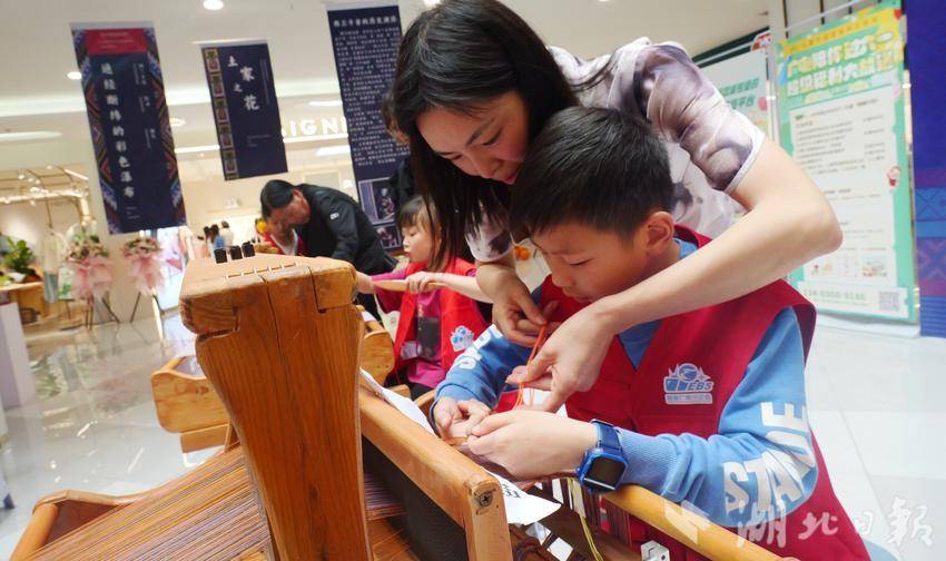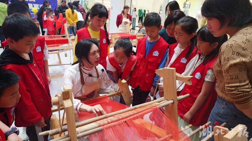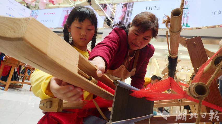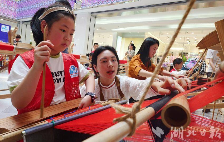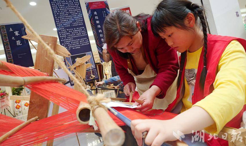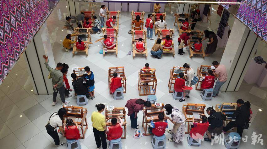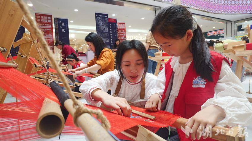 湖北日报客户端讯(通讯员 谢顺)5月27日,在恩施州城美美百货,非遗传承人、湖北允曦文化艺术发展有限公司谭艳华、谭艳宾姐妹与其他非遗传承人一起,指导研学学生进行西兰卡普编织。