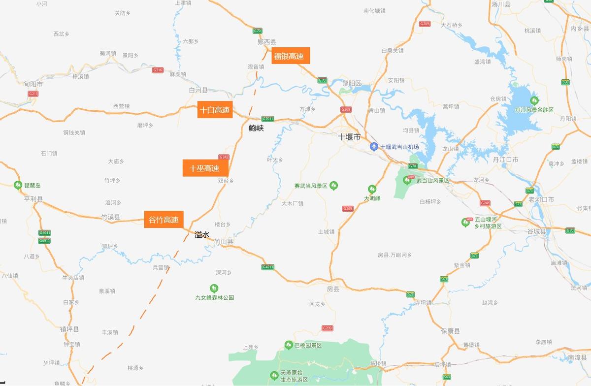 十巫高速鲍溢段起于十堰市郧阳区鲍峡镇,接十天高速十白段,止于竹山县溢水镇,接麻安高速谷竹段,全长58.632公里,总投资102.11亿元。该线路地处秦岭屏障以南、巴山横亘以北,山高坡陡,沟壑纵横,全线桥隧比达79.6%。