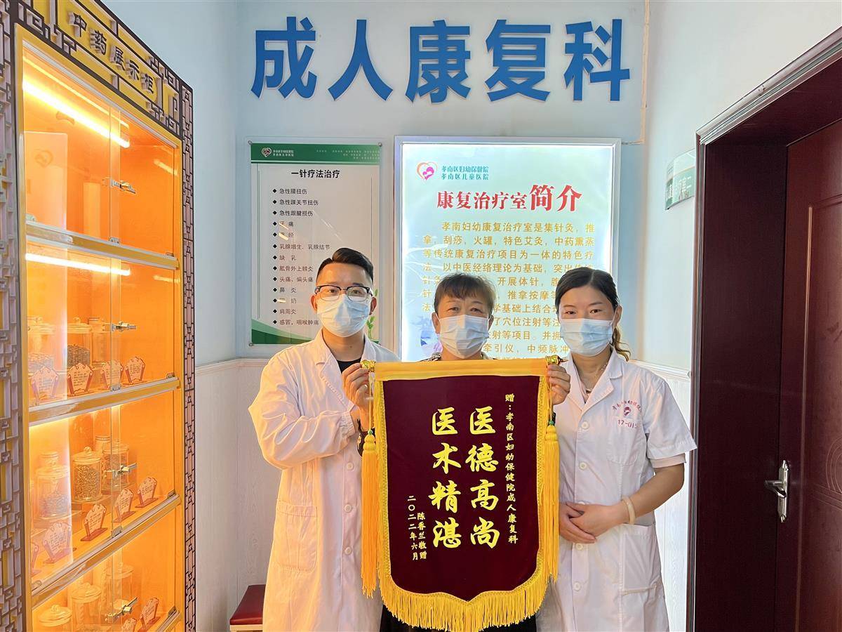 湖北日报讯(通讯员王梦璇、鲁鹏飞)6月20日,大拇指疼痛已经康复的陈女士来到孝南区妇幼保健院成人康复科,把精心制作的“医德高尚,医术精湛”锦旗送给医生鲁鹏飞,表达对医护人员的赞扬与感谢。