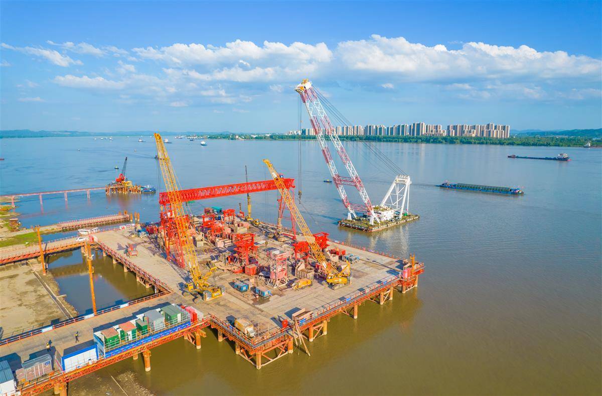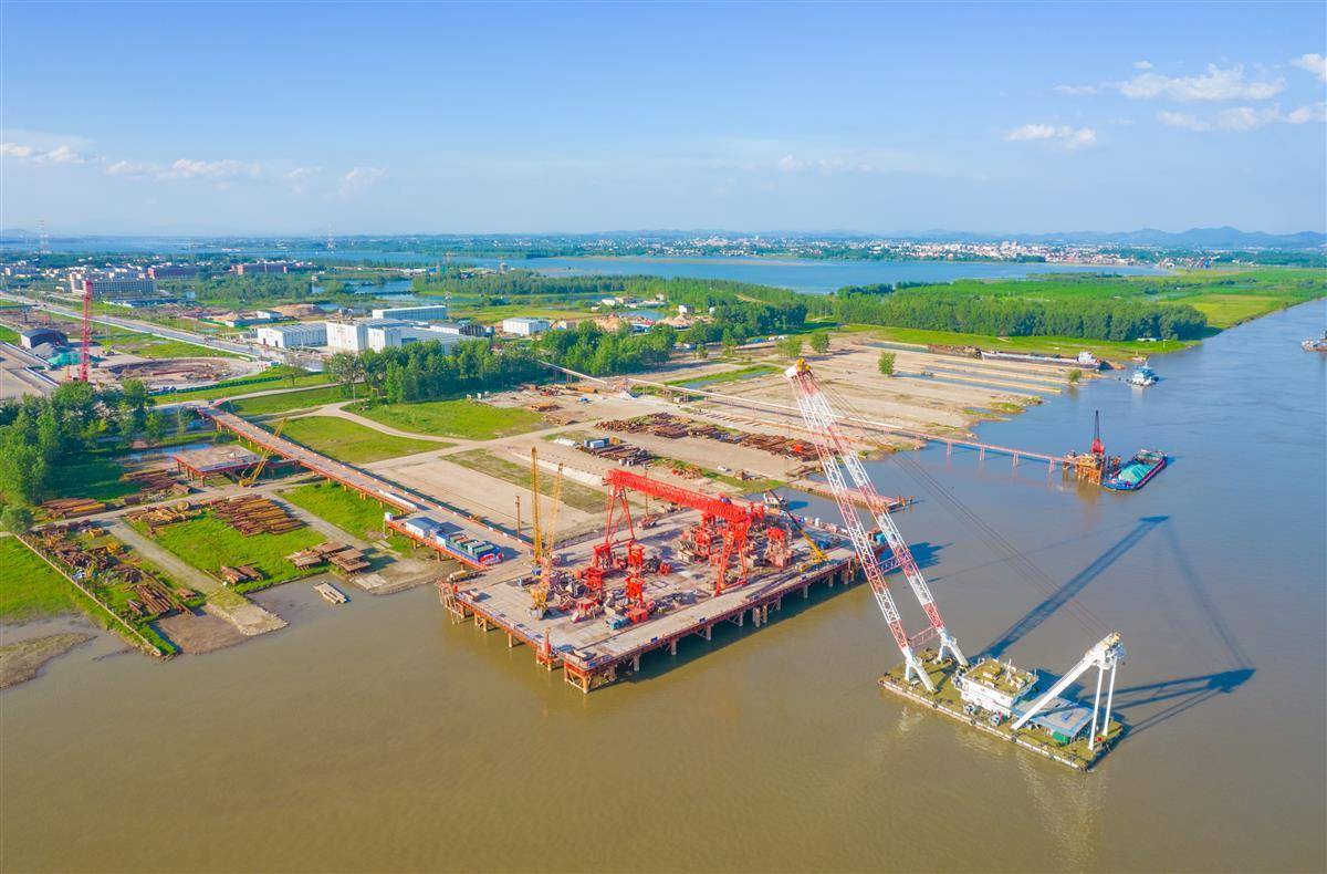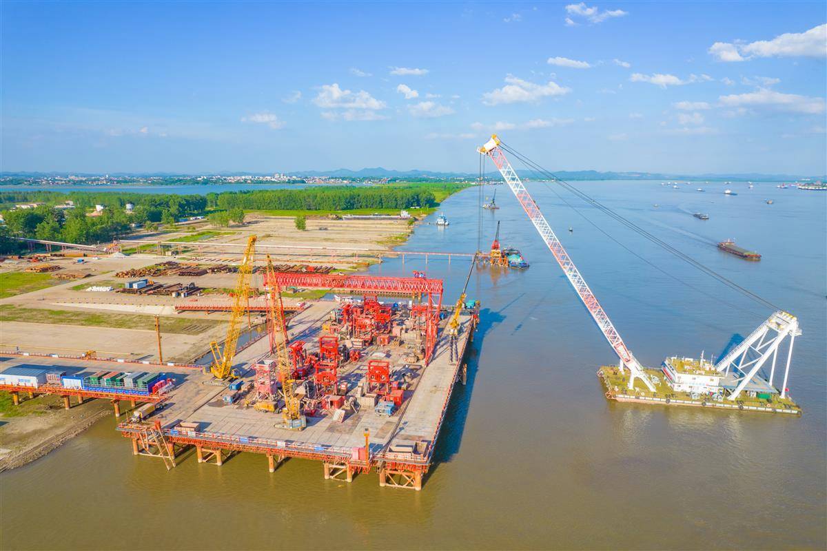 7月10日,燕矶长江大桥北岸中铁大桥局建设现场一片繁忙。目前,北岸大桥主塔正在进行桩基施工,锚碇地连墙施工已完成在进行导墙清除,引桥即将进行首个桥墩承台施工。鄂黄第二过江通道(燕矶长江大桥及接线)长约26公里,工期54个月。其主桥采用1860米悬索桥一跨过江,成为目前世界跨度最大的双层四主缆悬索桥。作为鄂州花湖机场配套建设项目,燕矶长江大桥是鄂东空铁、空陆联运立体交通运输体系的重要过江通道。