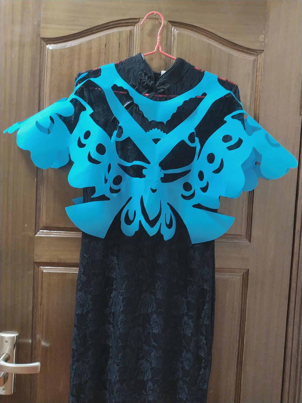 屋内亮堂起来,胡文英指导许再玉画稿、叠纸、剪刻、揭离、粘贴……一个小时后,以植绒布为原材料裁剪出来的旗袍搭肩惊艳“出炉”了。