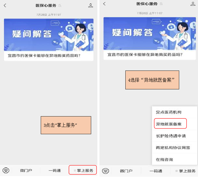 ☑宜昌市本地平台(仅适用宜昌参保人):医保心服务微信公众号、“宜昌市异地就医备案”小程序