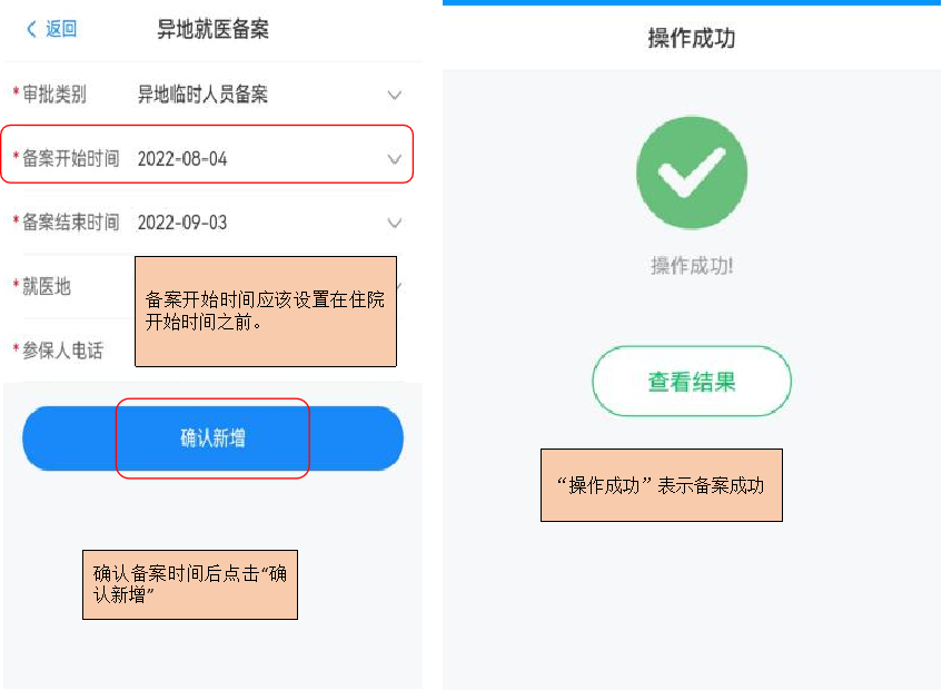 出院结算前:参保人员可向参保地申请补办异地就医备案,并直接结算。