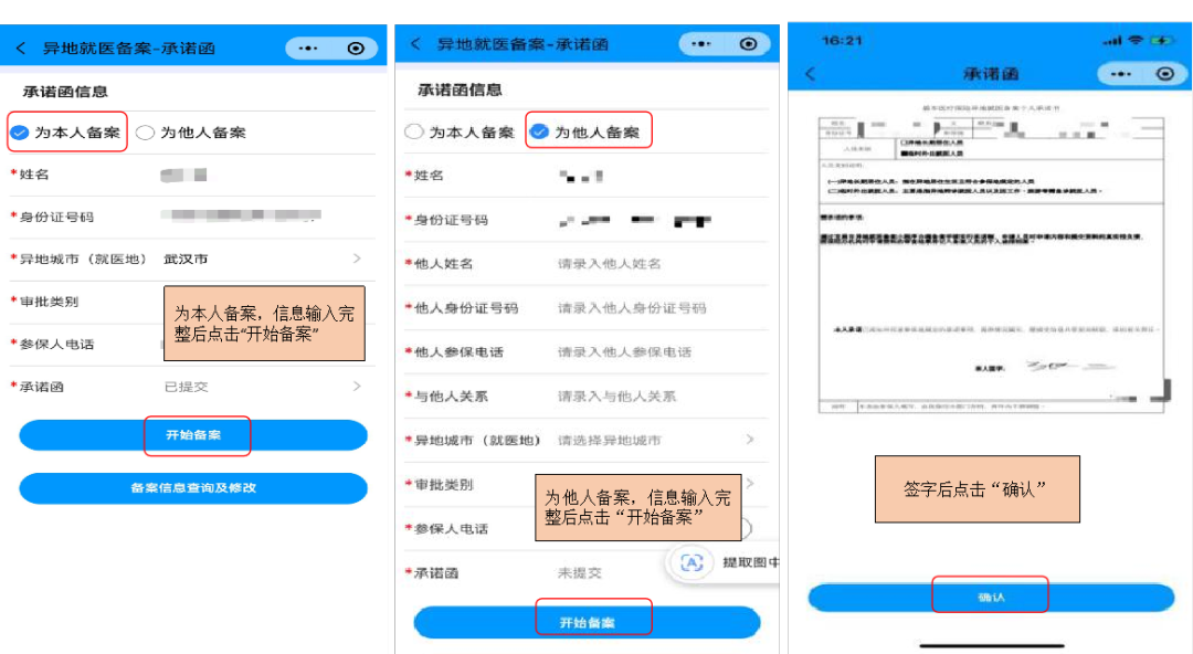 3、选择“为本人备案”(也可以为他人备案),并签署“承诺函”。