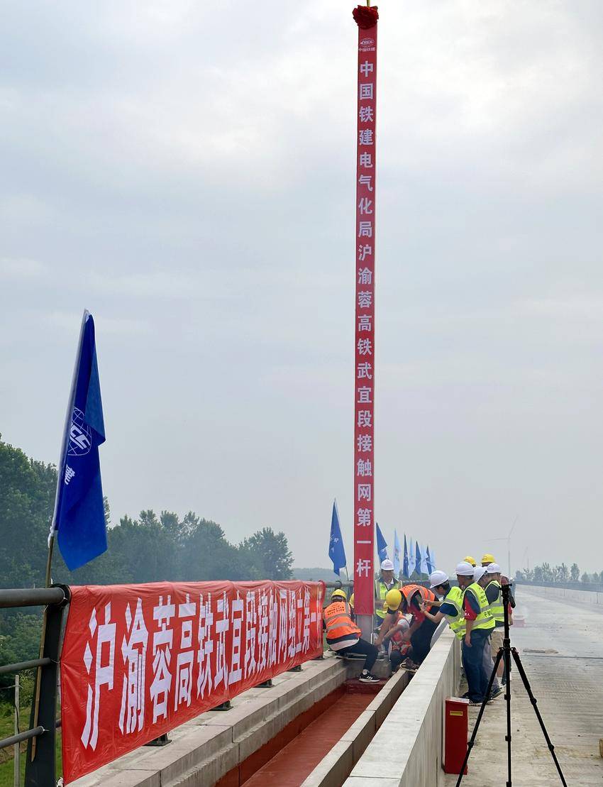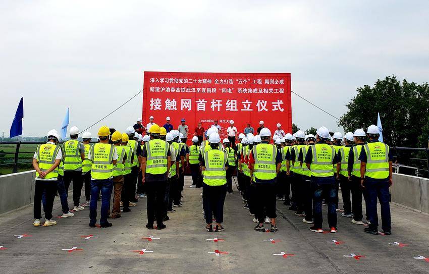 湖北日报客户端讯(通讯员王潮 孙昱 陈思)6月16日上午11时,在天门北至汉川东区间施工现场,伴随着起重机吊臂的缓缓收起,施工人员将接触网第一杆成功组立,标志着新建沪渝蓉高速铁路武汉至宜昌段“四电”系统集成及相关工程全面启动。