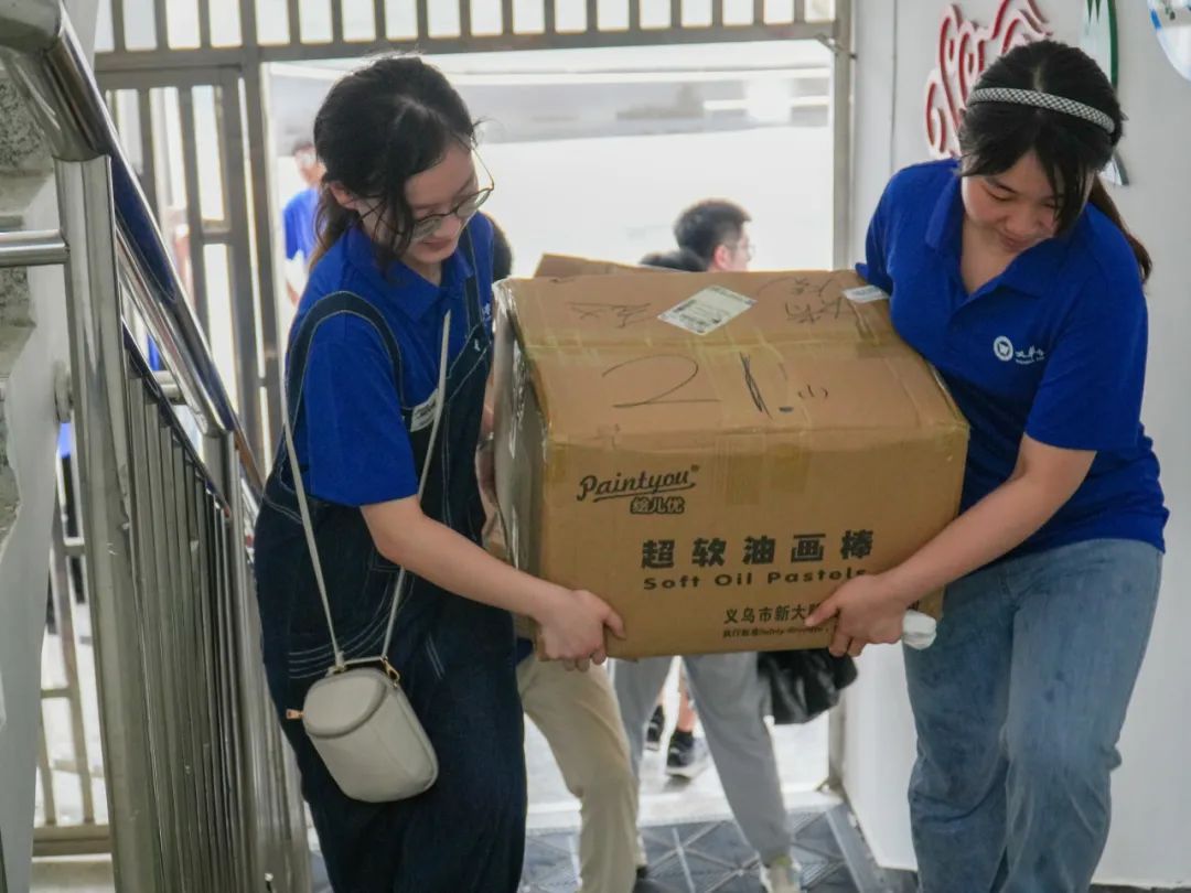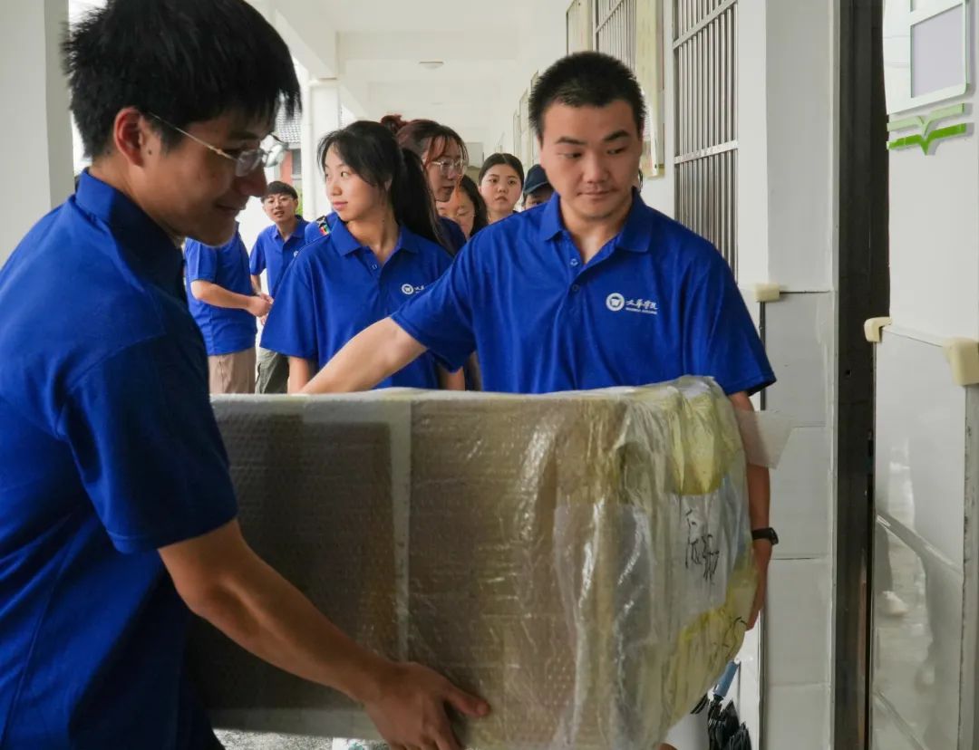 实践队员们历经两小时车程后,抵达了浠水县第六实验小学丁司垱校区。他们在蒙蒙细雨中搬运完教学物资后,课程组的十位班主任便开始了紧张有序的备课工作。
