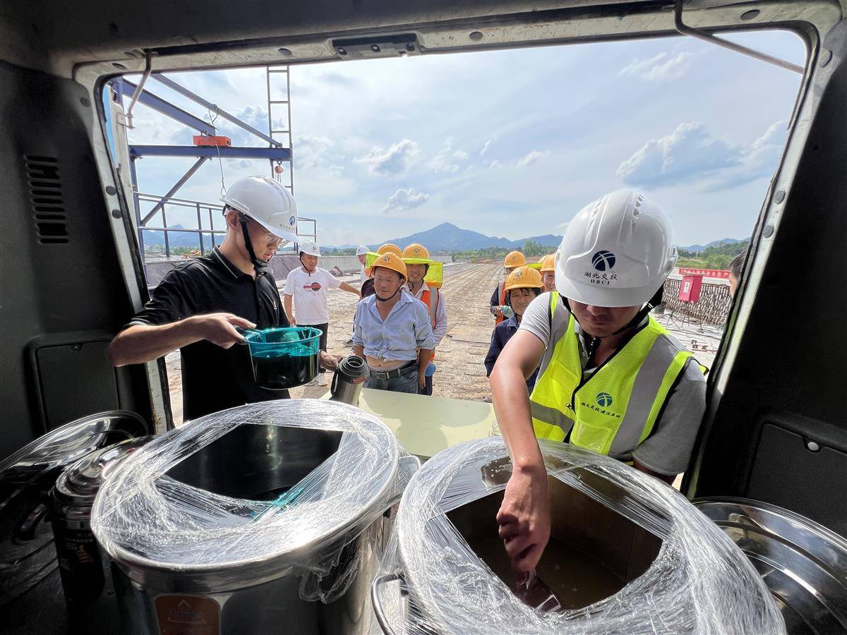 值得一提的是,该项目部首次投用多功能移动“纳凉车”。即通过对轻型箱式运输车进行“微改造”,装上绿豆汤、酸梅汤等多种消暑饮品,配备折叠式桌椅、休息床、应急物资、药品等。入夏以来,纳凉车全天不间断往返在项目施工全线,随叫随停,送清凉到一线。此外,“纳凉车”还往隧道运输冰块,在鼓风机的效果加持下,冰块挥发吸热,降低隧道温度。如遇工人身体不适、中暑等突发情况,“纳凉车”还能充当应急车,最短时间将人员送往医院。