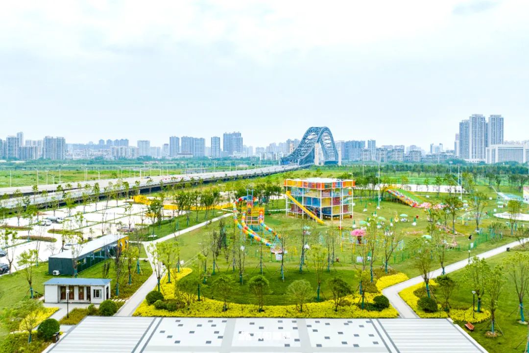 其采用“一心•一环•两轴•十八景”的景观空间结构,呈现出四大主题活动线路,并与汉江湾桥左侧的花田花海、汉水碧道等游乐项目有机串联,着力打造成儿童的游乐场、年轻人的潮酷运动场、全龄段的竞技体育场、老年人的天然氧吧。