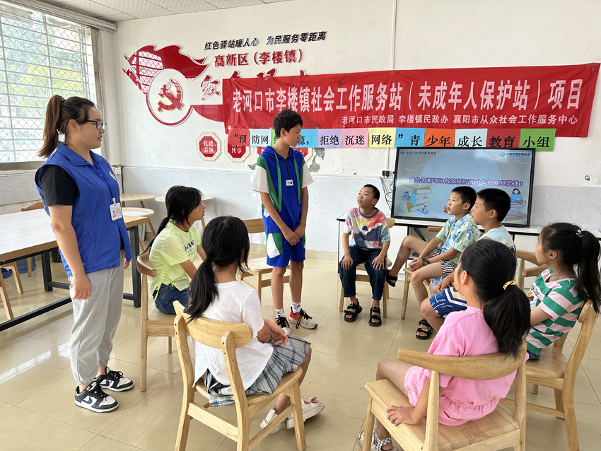 湖北日报客户端讯(通讯员魏晨晓)为保护未成年人的身心健康,提高青少年对电子产品的正确认知和合理利用,在老河口市民政局、李楼镇民政办指导和红庙社区的支持下,襄阳市从众社会工作服务中心驻李楼镇社工站项目组在红色驿站成立青少年成长教育小组,开展“预防网络成瘾,拒绝沉迷网络”青少年服务项目,该项目于8月21日圆满结束。此次小组共招募8名成员,累计服务39人次。