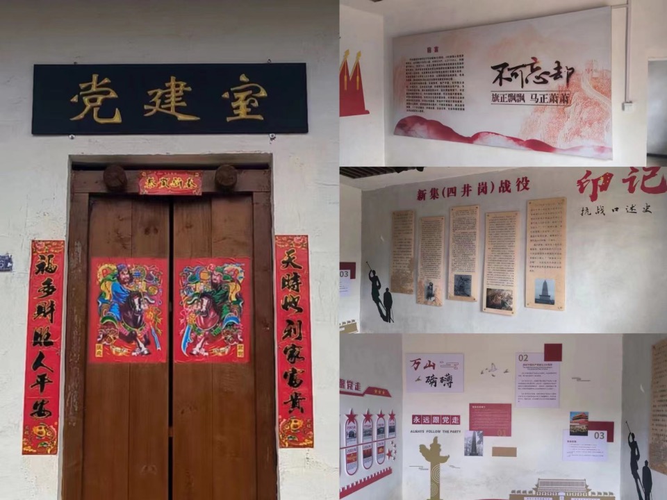 突出红色文化建设。作为红色革命老区,充分利用红色资源,结合美丽乡村建设,对防空洞遗址、旧房屋、老农具进行修复保护。集资修建党建室,通过深挖红色故事,集中展览中共党史及革命事迹,供党员群众参观学习,现已成为缅怀革命先烈、传承革命精神的重要平台。