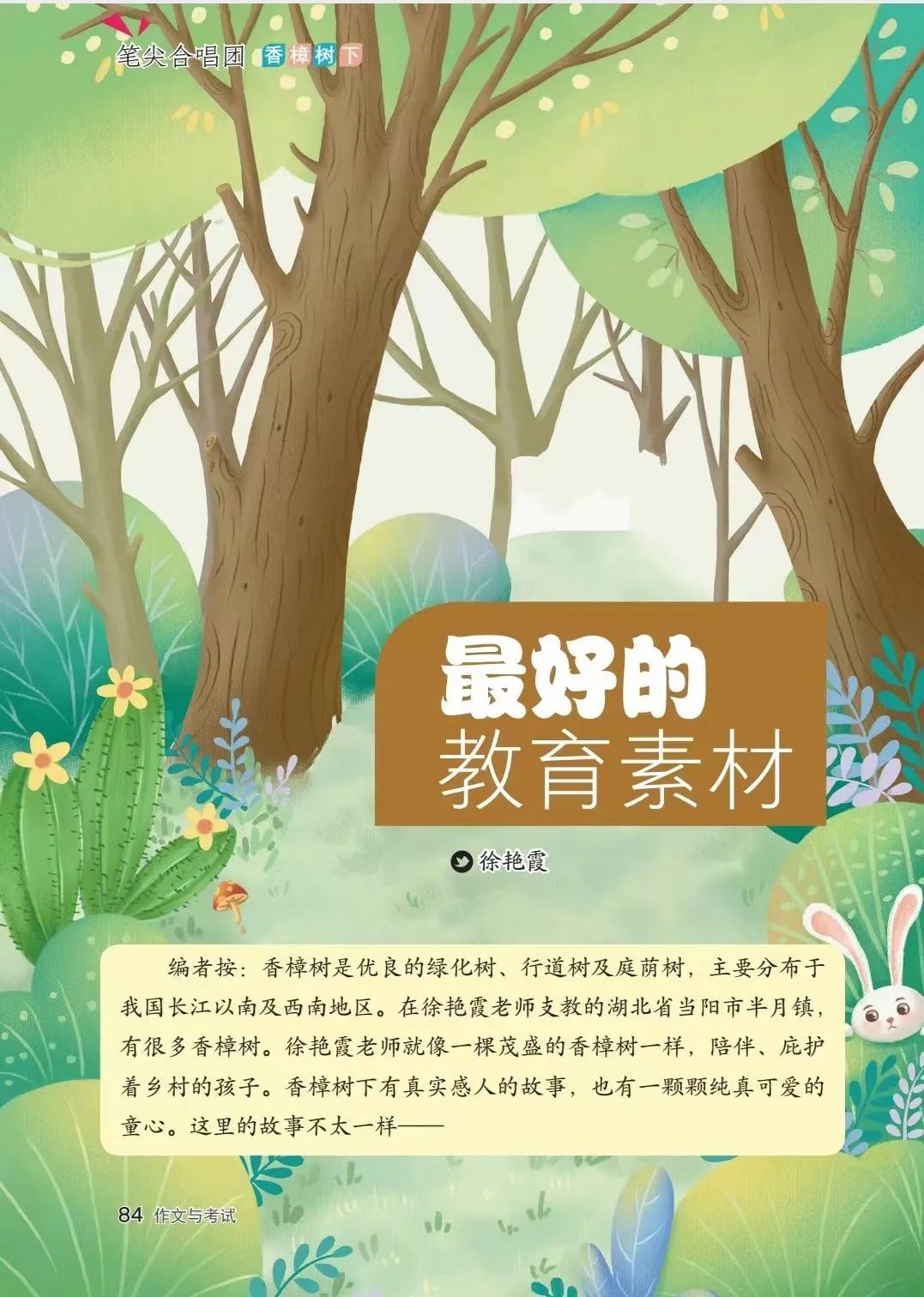 唯有充分的阅读,才能有精彩的写作。我引导学生一起由读到写,以写促读,相依相生,相得益彰。每学期一本流动的《班级日志——心灵驿站》,由全班学生按学号轮流撰写,每个月评选“半月之星”,一起给“半月之星”撰写颁奖词。一学期结束时,整理出一本厚厚的班级作文集,名字五彩缤纷:《悬挂的风铃》《成长的小脚丫》《飘飞的蒲公英》等等。孩子们的童年被点亮了,有更多的希望和梦想。幸运的是,我和孩子们在省级刊物《作文与考试》中拥有了自己的专栏——《香樟树下》,书写着属于我和孩子们的专属故事。