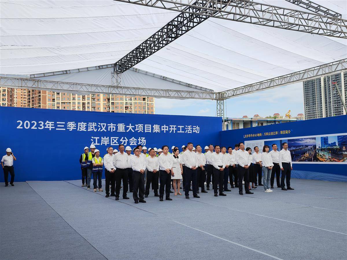 湖北日报讯(记者马文俊、通讯员杨晨光)塔吊林立,货车穿行,江岸区百步亭丹水K3地块(万科云泊江岸)项目现场一片繁忙。9月14日,2023年三季度江岸区集中开工活动在此举行。