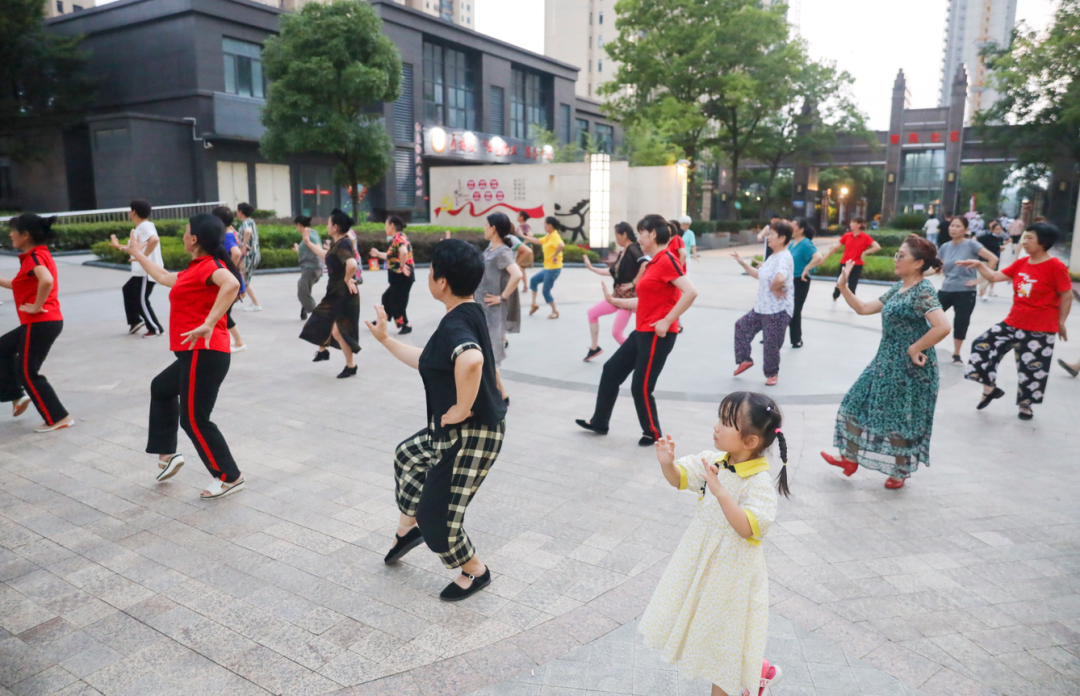 夜幕降临,左岭街智苑社区居民们正在跳舞休闲