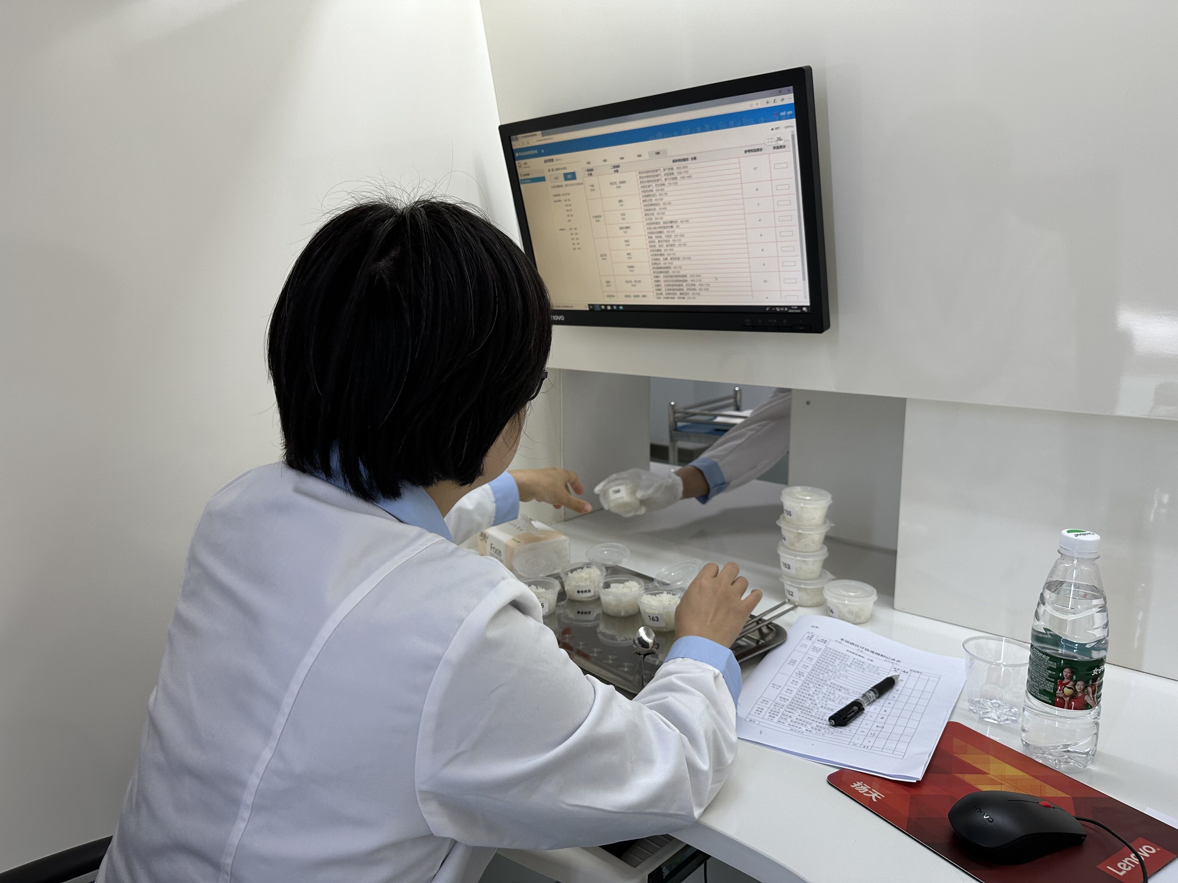操作台上一张米饭蒸煮时间表上,洗米、称水、浸泡、煮饭、焖饭、搅拌、盛饭、送饭等工序都逐一对应时段,细化到分钟。由于是现煮现评,为确保品鉴无缝对接,需要精确计算好每一批米饭蒸煮的时间。为了公平地对待每一份样品,煮饭严格按标准流程,每一步都不能省——