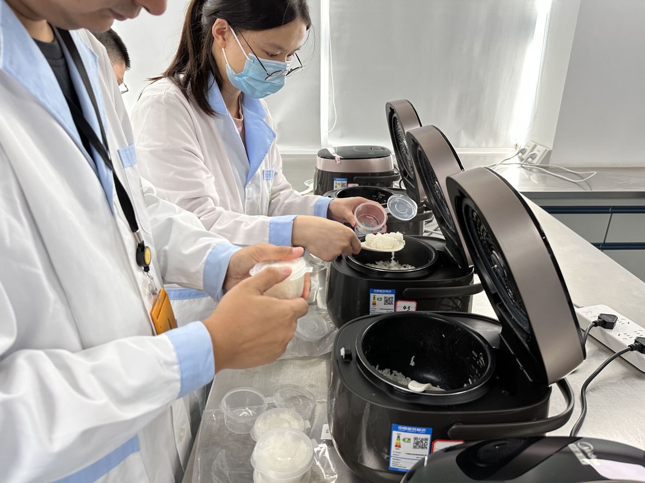 当日上午9时,省粮油食品质量监督检测中心。刚到6楼,走廊里弥漫着米饭的喷香。在样品制备间,湖北日报全媒记者见到42个电饭煲轮班“开工”。