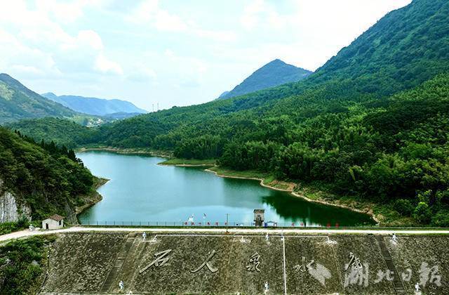 赤壁市赵李桥镇百花岭村下游是碧波荡漾的石人泉水库,这是一座以灌溉为主,兼有防洪、饮水、发电等综合效益的水库,库容465万立方米。