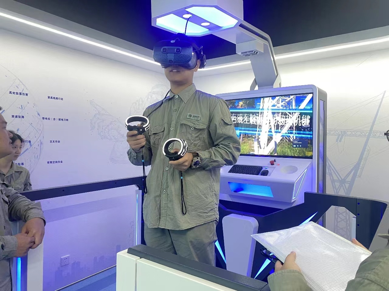 基建施工典型作业沙盘以±800千伏武南大跨越、武汉特高压变电站等重大工程项目为依托,实景打造基础施工、组塔架线、索道运输、变电站施工等高风险作业场景,集中展示基建施工的安全文明施工要点及风险管控措施。综合安全体验区通过沉浸式体验触电、高坠、物体打击等项目,让体验者切身感知安全事故的严重后果,提高作业人员安全意识,实现“要我安全”到“我要安全”的转变。