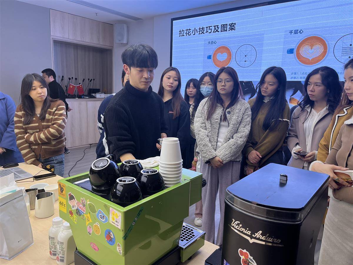 当晚7点半,武汉市江汉区创谷文化与科技融合示范集聚区青年之家,一群年轻人围坐在一起,聚精会神。龚本义曾获得世界级及全国级拉花比赛地方赛区冠、亚军。作为夜校老师,他现场实操教学咖啡拉花,让大家目不暇接。
