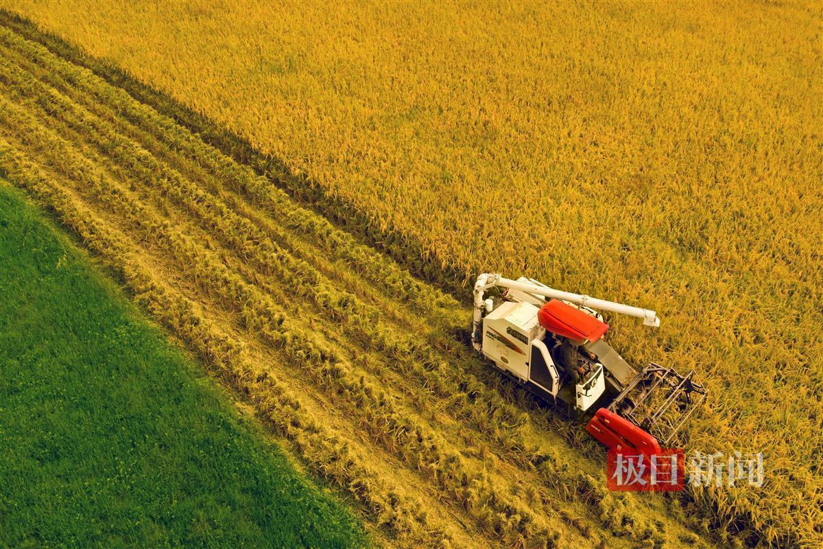 监利市水稻机械收割场景(通讯员张志斌摄)