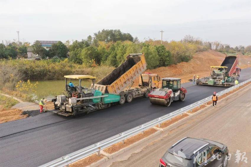 在洈水旅游快速通道近城区3.6公里段,各种机械设备齐上阵,正在进行沥青面层施工。截至目前,右道的3.6公里铺装和道路交安工作均已全部完工。“我们每天投入机械设备40-50套,投入工人30余人,全力以赴,加班加点,确保本月底通车。”洈水旅游快速通道项目经理郑峰介绍项目进展。