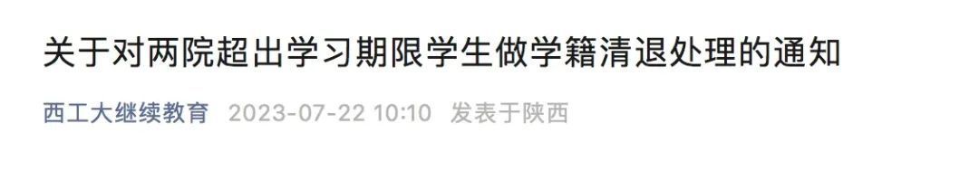 西北工业大学继续教育(网络教育)学院发通知称,拟对1599名网络教育超最长学习年限在籍学生做学籍清退处理。