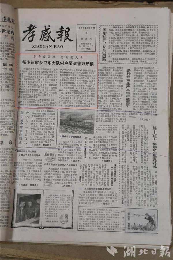 孝感报1981-10-3《多卖爱国粮 感谢老大哥 杨小运家乡卫东大队54户要交售万斤粮》