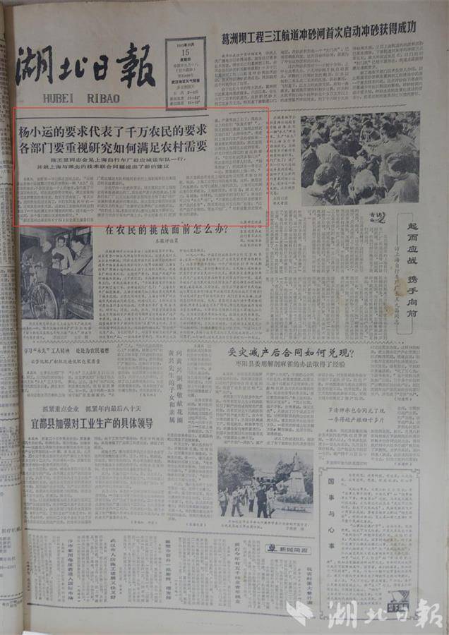 湖北日报1981-10-15《杨小运的要求代表了千万农民的要求 各部门要重视研究如何满足农村需要》
