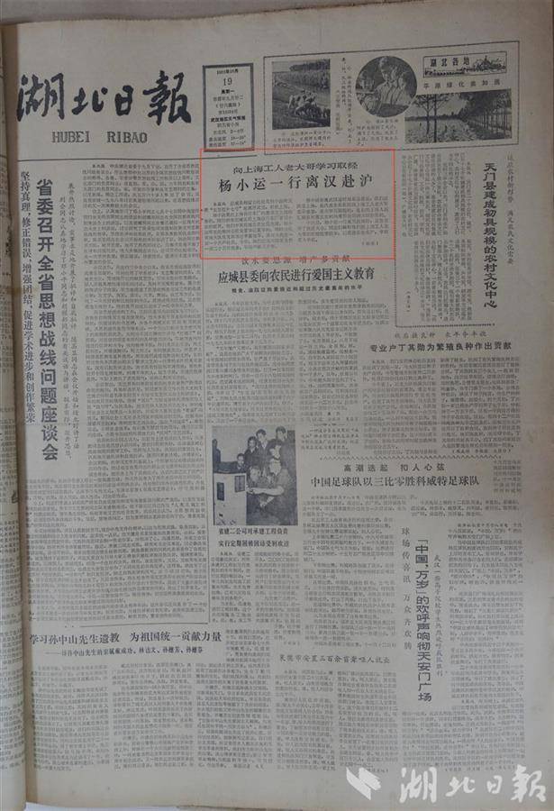 湖北日报1981-10-19《向上海工人老大哥学习取经 杨小运一行离汉赴沪》