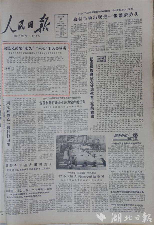人民日报1981-9-29《农民兄弟要“永久” “永久”工人要尽责》