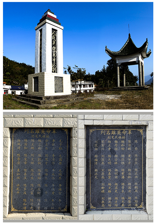 ▲上图:纪念碑及纪念亭丨下图:纪念碑的青石板上镌刻的英雄名单