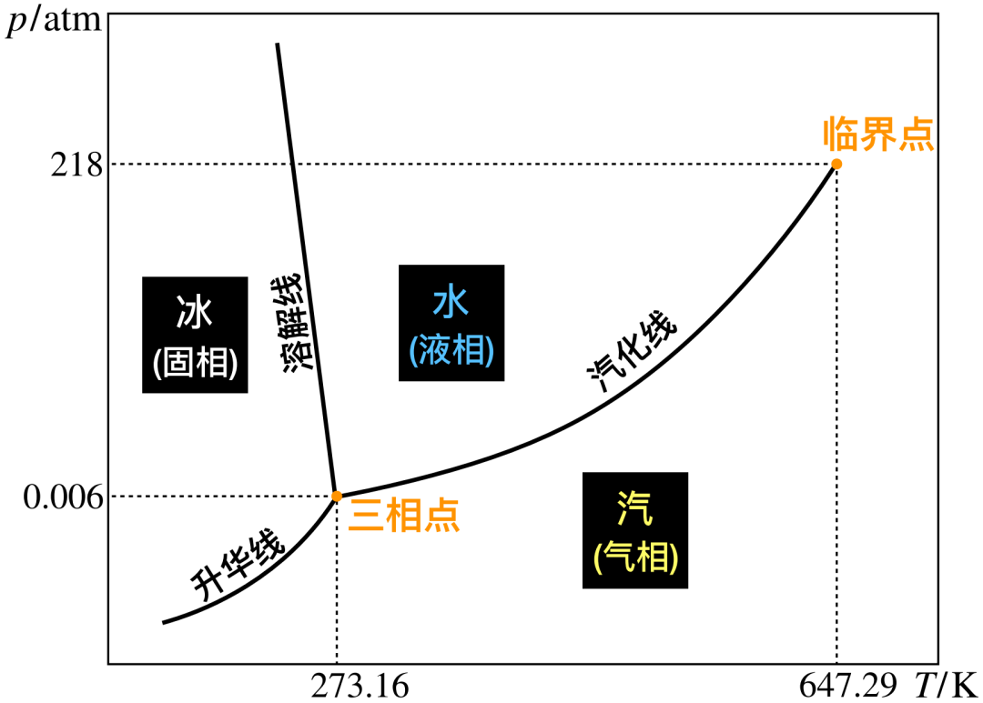 这是因为呀,人的舌头表面有一层水(唾液),当舌头接触寒冷的铁栏杆时,这层水会结冰,将舌头和栏杆粘在一起。在夏天(或者其它时候)你吃雪糕的时候也可以有类似的体验。那么到现在我们可以得到一个结论:水只要到了凝固点以下,就会结冰。这个结论对不对呢?其实是不对的。相反,我们会发现,在凝固点以下,冰的表面也一定会有一层水。还记得中学时学过,液态和固态是水的两种物态,他们可以相互转化,水和冰之间的转化就是相(xiàng)变。所谓的相,指的就是被一定边界包围, 具有确定而均匀的物理和化学性质的系统或系统的一部分。例如液态水具有确定而均匀的物理和化学性质,是一个相;而固态水,也就是冰,和液态水的性质不一样,因此是另外的相,此外,根据冰中水分子的排列方式不同,自然界的冰也存在不同的相。我们知道,自然界的物质有自发地达到能量最低状态的倾向,在低温下,冰相对于水是能量更低的状态,因此水在低温下会结冰。但是这里所说的能量并不是水或者冰的内能,在保持温度和压强恒定的情况下,系统的吉布斯自由能。吉布斯自由能是温度和压强的函数,水和冰这两种相有着不同的函数形式。在一个特定的温度压强下,平衡态系统只能处在吉布斯自由能较低的那个相。两个相的吉布斯自由能相等时的温度和压强就是相变发生的条件。吉布斯自由能随温度变化示意图,平衡态下吉布斯自由能低的相可以存在,两相吉布斯自由能相等时即为相变点如果我们只考虑一个标准大气压的条件,那么水的凝固点就是 0℃,低于这个温度,冰的吉布斯自由能更低,因此平衡态下水这种物质以冰的形态存在,高于这个温度,水的自由能更低,液态水可以存在。在 0℃,冰和水可以共存。温度和压强事实上是两个独立的变量,但是当人们加上两相吉布斯自由能相等这样一个限制条件之后,相当于把温度压强的取值限制在了二维空间的一条曲线上。我们知道水还有气相,也就是我们所熟知的水蒸气。水蒸气可以通过凝华、升华与冰相互转化,也可以通过液化、蒸发与液态水相互转化,这也都是相变。发生相变的温度和压强取值由参与相变的两相吉布斯自由能相等确定,这样我们确定了三条曲线,分别是气相与液相的共存线称为汽化线或液化线,固相与液相的共存线为溶解线或凝固线,气相与固相的共存线为升华线或凝华线,三条线相交于三相点,三相点上三相共存,有确定的温度和压强。我们仔细观察水的相图,注意到水和冰之间的共存线,也就是溶解线,斜率是负的。这说明随着压强增大,冰的熔点逐渐降低。这一点在我们生活中就有应用。滑冰运动员穿着冰刀能够在冰上高速运动,是因为冰刀与冰面的接触面积很小,在重力的作用下形成了很大的压强,导致冰刀下方局部冰面熔点降低发生熔化,形成一层水,这层水起到降低摩擦力的作用,让运动员可以在冰上高速运动。那么问题来了,冰刀下面的冰的熔点可以降低多少度,以至于在冰天雪地里,冰可以熔化?其中T, p 分别是两相共存曲线上的温度的压强,vw 和vi 分别是水和冰的单位质量的体积(就是密度的倒数),λ 是冰的熔解热,即单位质量的冰熔化成水所放出的热量。我们代入数据,在一个标准大气压下,水的熔点是273.15K,vi=1.0907x10-3m3/kg,且vw=1.00013x10-3m3/kg,熔解热λ=3.35x105J/kg这样得到对于体重 75kg 的滑冰者,假设冰刀长度是 10cm,宽度是 1.5mm,那么冰刀施加在冰面上的压强不会超过 50 个大气压,按照线性关系进行估算,冰的熔点降低约 0.4℃,查表可知在 50 个大气压下的冰的熔点约-0.37℃,我们的估算是可靠的。这种程度的熔点的降低相对于零下几度甚至十几度的冰天雪地实在是有些小了,所以真正导致冰表面有一层水的并不是冰刀的压强,而是...事实上,冰的表面就是会有一层水,即使是在温度低于熔点的情况下。早在 1842 年,法拉第就通过实验研究了这个现象。而直到今天,人们依然在探索这层水的形成机理以及这层水可能存在的最低温度。我们把这种熔点之下,固体表面存在一层液态物质的这一现象称为预熔化。既然是研究水,我们不妨先考虑真正的液态水,以及构成它的分子:水分子。我们知道水分子中一个氧原子通过共价键结合两个氢原子,还可以借助氢键结合另一个水分子的两个氢原子,因此在液态水中,水分子的排列是长程无序的,但是对于一个水分子附近的一小块区域,每个氧原子总是被四个氢原子围绕着。上面的讨论只适用于大量水的内部,水的表面也是这样吗?物理学家外尔(Weyl)——不是那个外尔费米子的外尔——提出了这样的假设:在水分子之间的电磁相互作用下水分子倾向于使表面没有质子,氧位于最外层,而氢总是朝液体内部,这样也就形成了一个“电荷双层”,外面是负电荷,里面是正电荷。液态水的表面氧原子倾向于排在外侧,氢原子倾向于排在内侧,形成电荷双层于是我们可以进行推断,冰和水是同一种分子,那么冰的表面也倾向于使氧原子分布在外侧而质子位于内侧。但是,由于冰是固体,不像液体那么容易改变表面分子的排列方式,为了降低表面能,冰的表面必须存在一层水膜,这层水膜提供从有序的晶格结构到相对无序的“电荷双层”之间的过渡。这部分水膜的能量会比相同条件下等量的水要高,但却足以抵消平整表面所产生的表面能。上面外尔的分析定性地回答了为什么冰的表面会有一层水,后