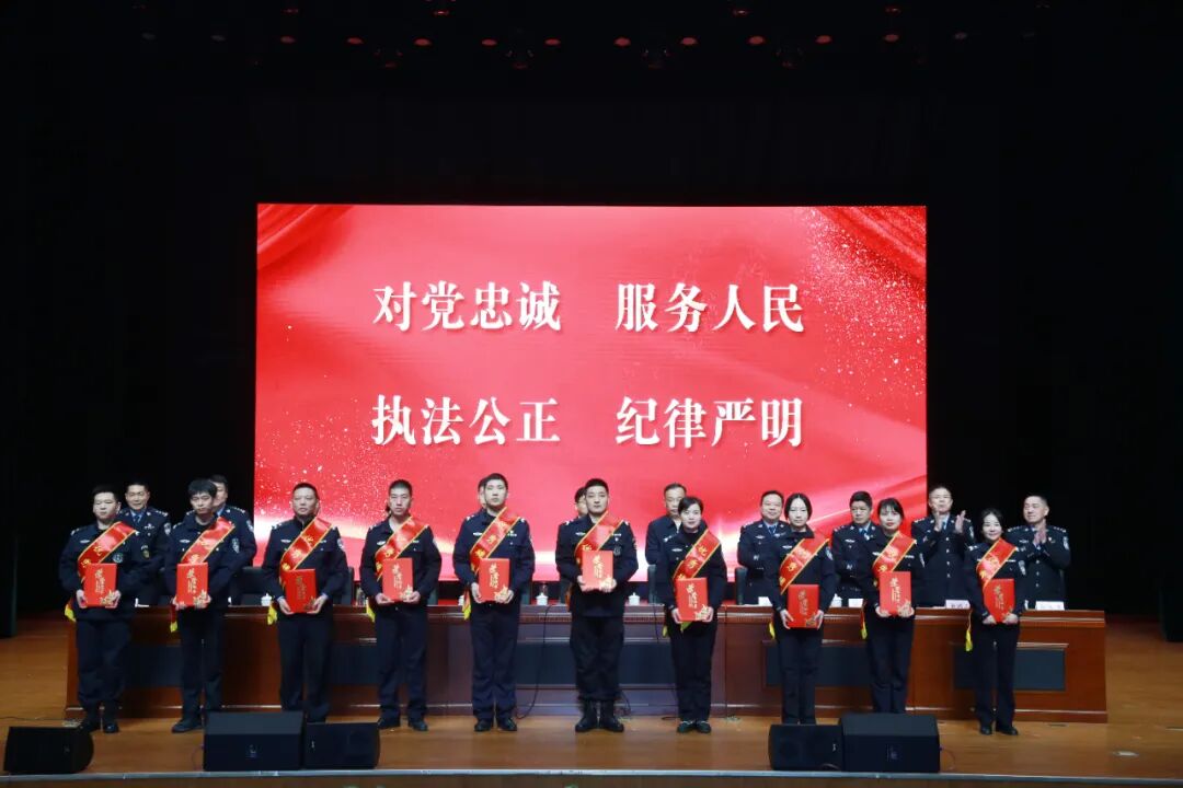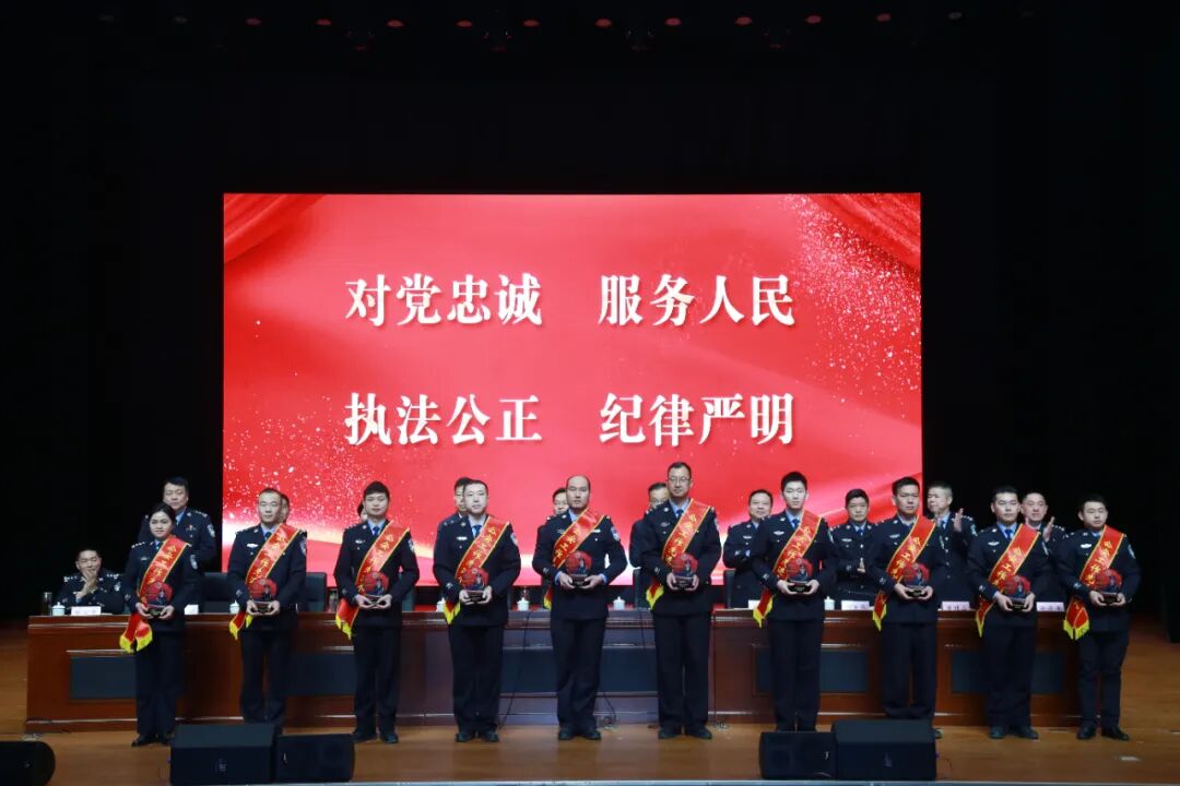 会议隆重表彰了2023年度成绩突出的10个先进集体、41名先进个人、50名优秀辅警和10个警务创新成果及精品案件,出席会议的领导为受表彰代表进行了现场授奖。